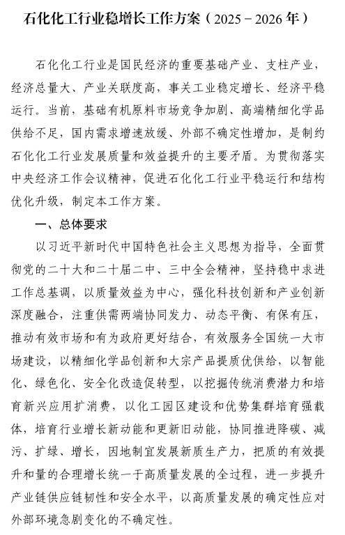 【大河财立方消息】9月26日消息泸深通,工业和信息化部等7部门印发《石化化工行业稳增长工作方案(2025-2026年)》。